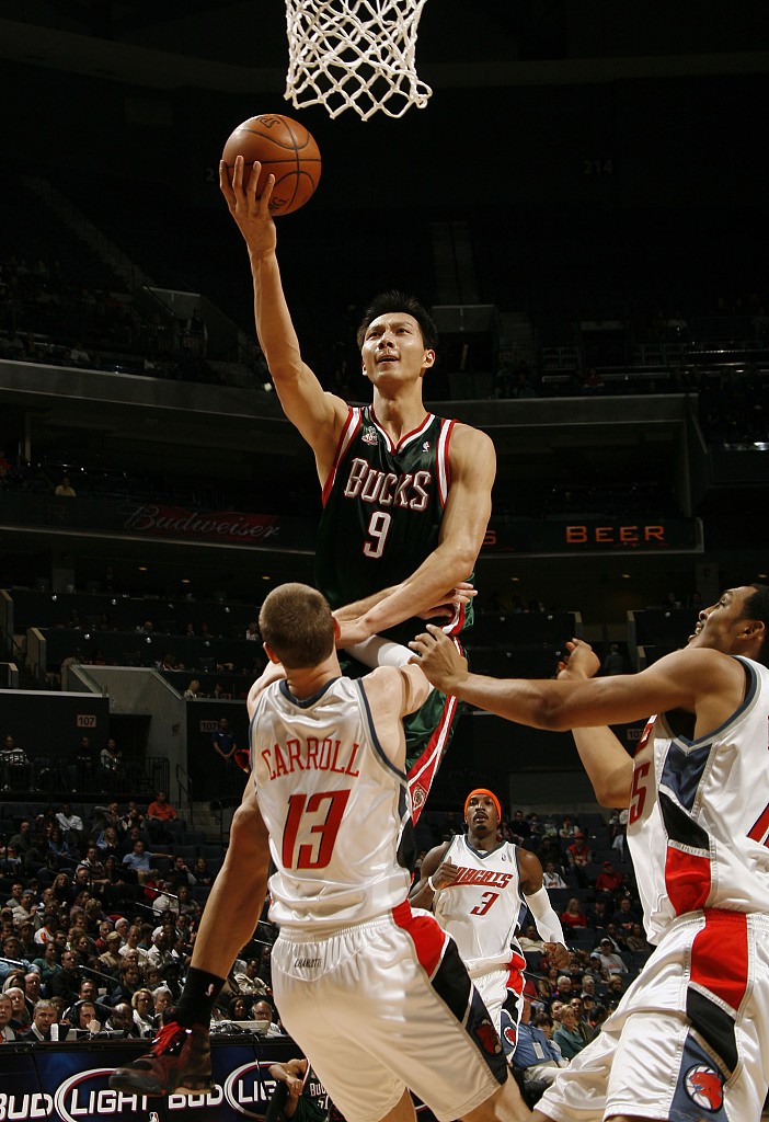 易建联 2007年 同年雄鹿6号秀但代表中国男篮出战 首秀15投7中贡献23分4篮板